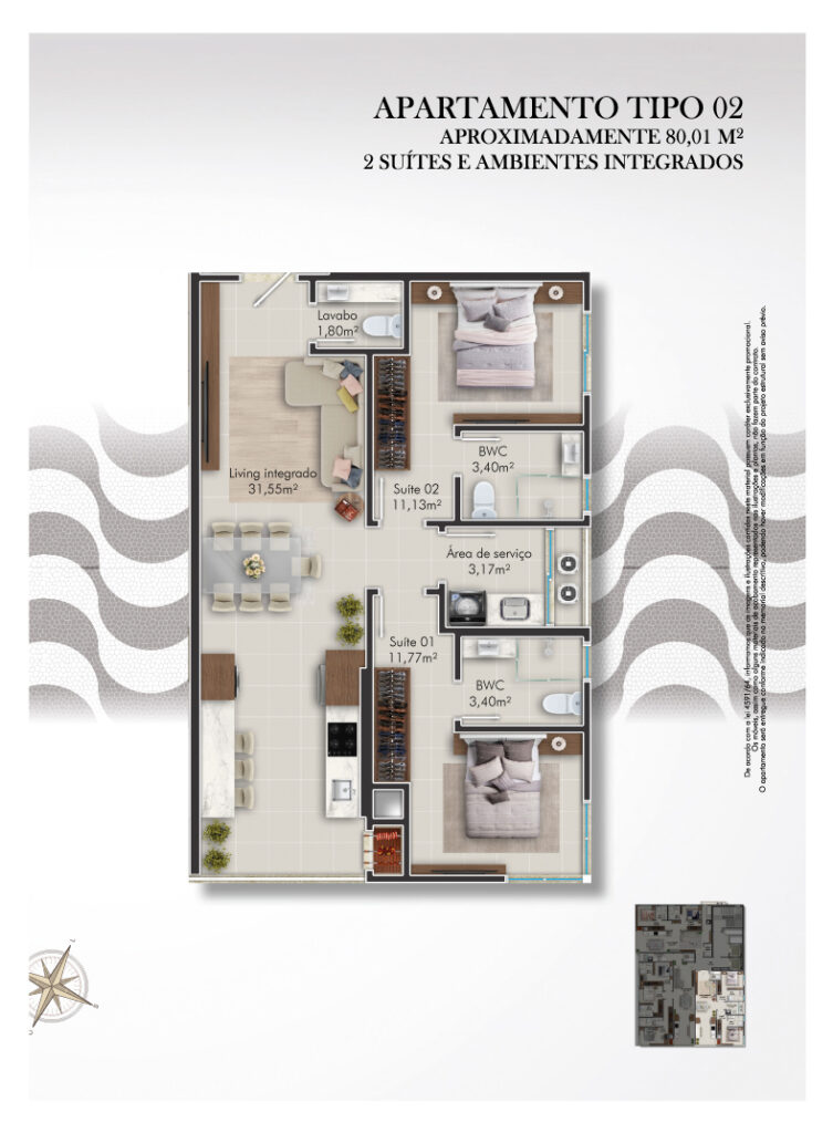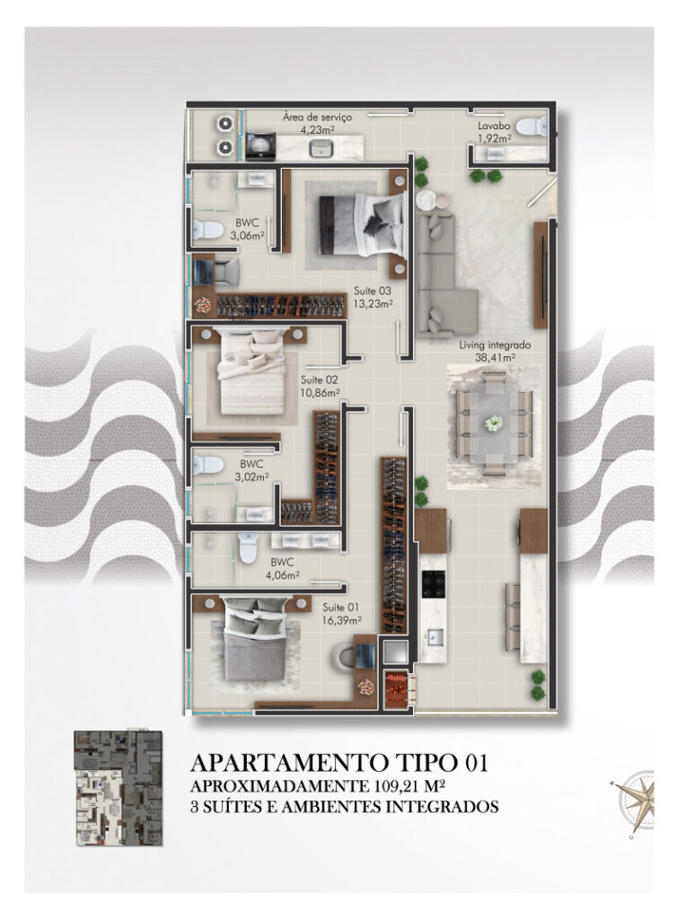 O Edifício é inspirado na praia de copacabana no Rio de Janeiro, a qual é uma das mais belas e importantes do Brasil, sendo a praia mais conhecida pelo mundo todo. O conceito da arquitetura contemporânea do Copacabana, está retratada em suas curvas sinuosas, representando as ondas do mar quebrando na praia em noites de luar da encantada praia de Balneário Perequê.